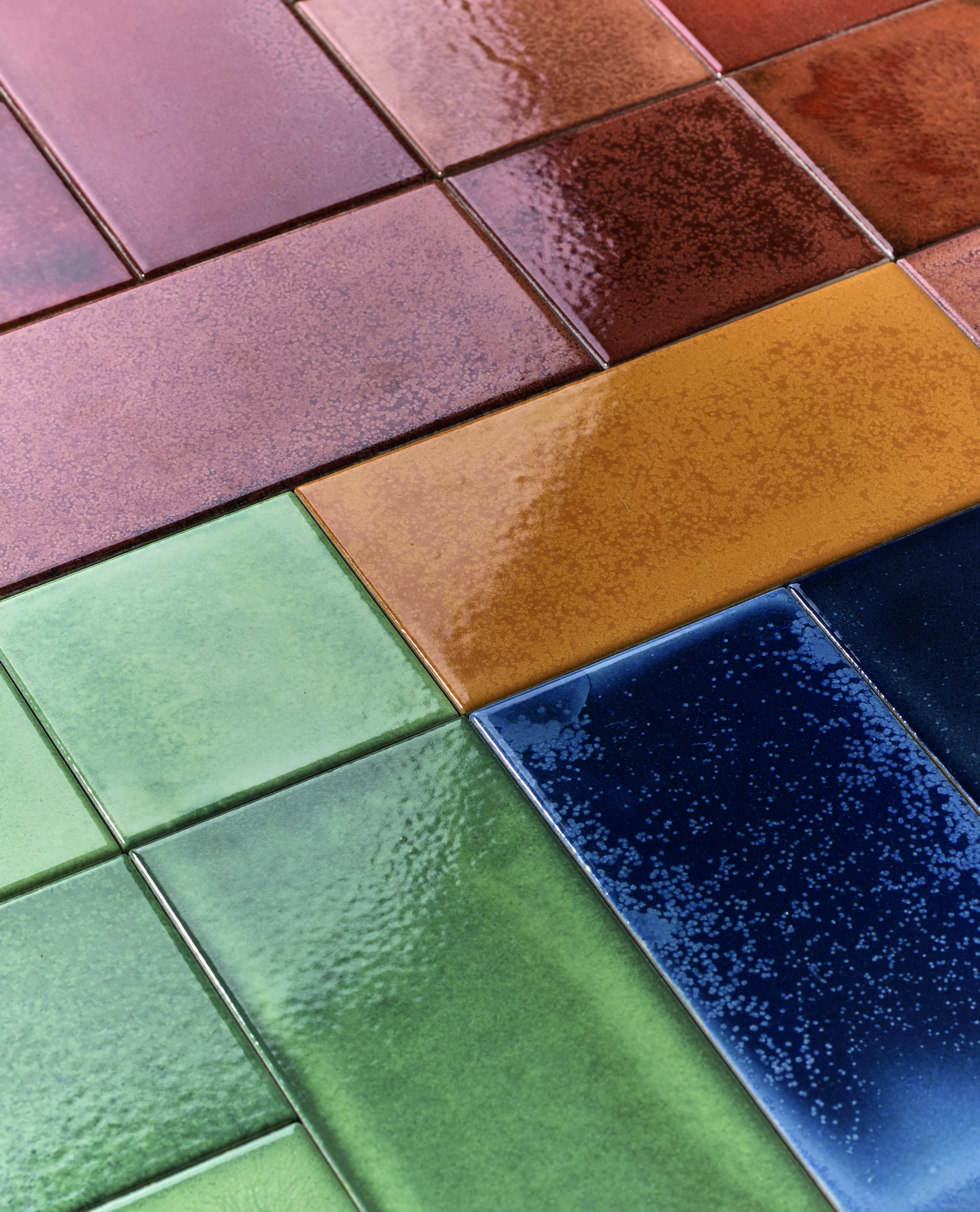 Il risultato sono piastrelle dai colori intensi e dalle strutture con effetti ceramici unici. Ogni serie ha un aspetto vivace e individuale: ci sono sei colori tra cui scegliere, e ogni colore è composto da un massimo di 75 piastrelle progettate individualmente. Effetti smaltati vivaci si alternano a varianti più sobrie, creando un motivo superficiale distintivo che permette a composizioni nuove e sorprendenti di emergere ad ogni installazione.